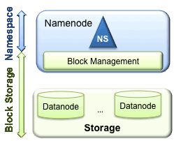 命名空间 由目录、文件和块组成。 支持所有命名空间相关的文件系统操作,比如创建、删除、修改以及遍历文件和目录。 块存储服务,包括两部分: 块管理(在Namenode中执行) 处理Datanode向Namenode的注册请求,处理DataNode集群的成员关系,处理来自DataNode的周期性心跳。
