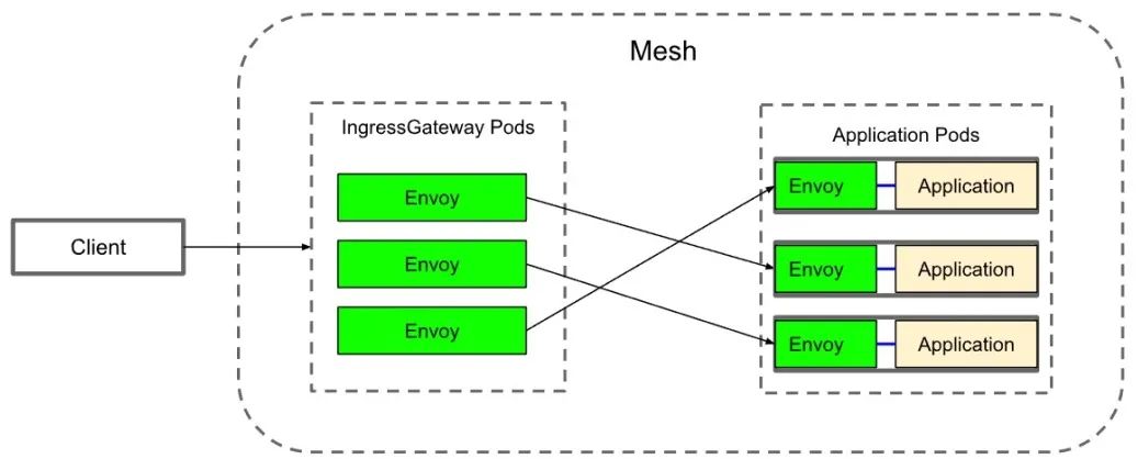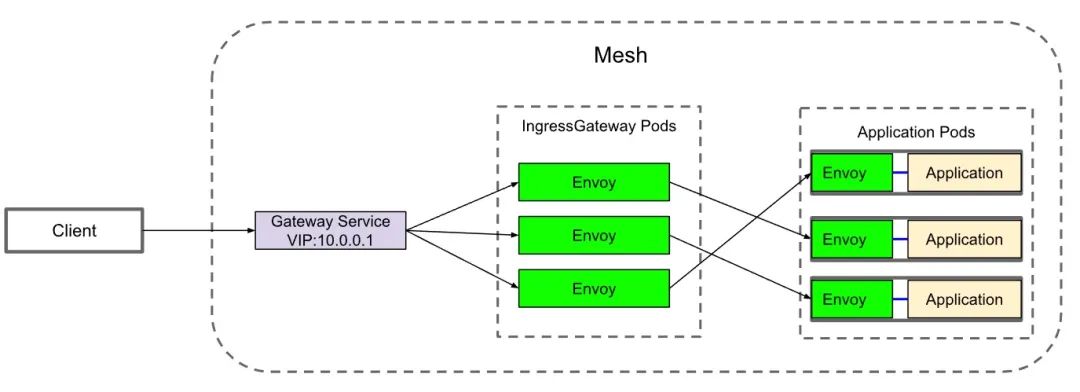 它们像是一个网格的边缘节点,能够代理所有外部进入网格的流量,并且会把相应的请求通过L7路由转发到后端应用的Sidecar,具体如图3.1所示: