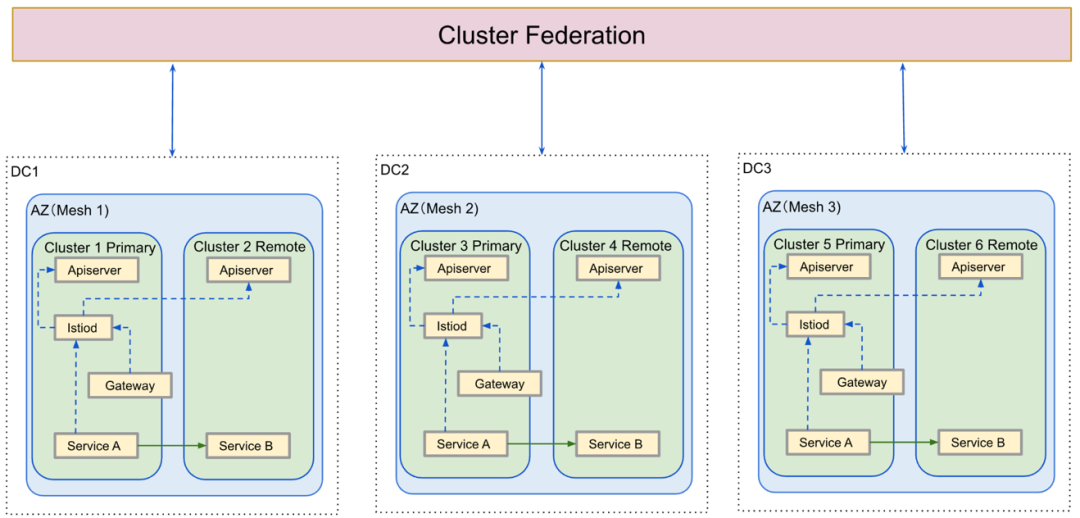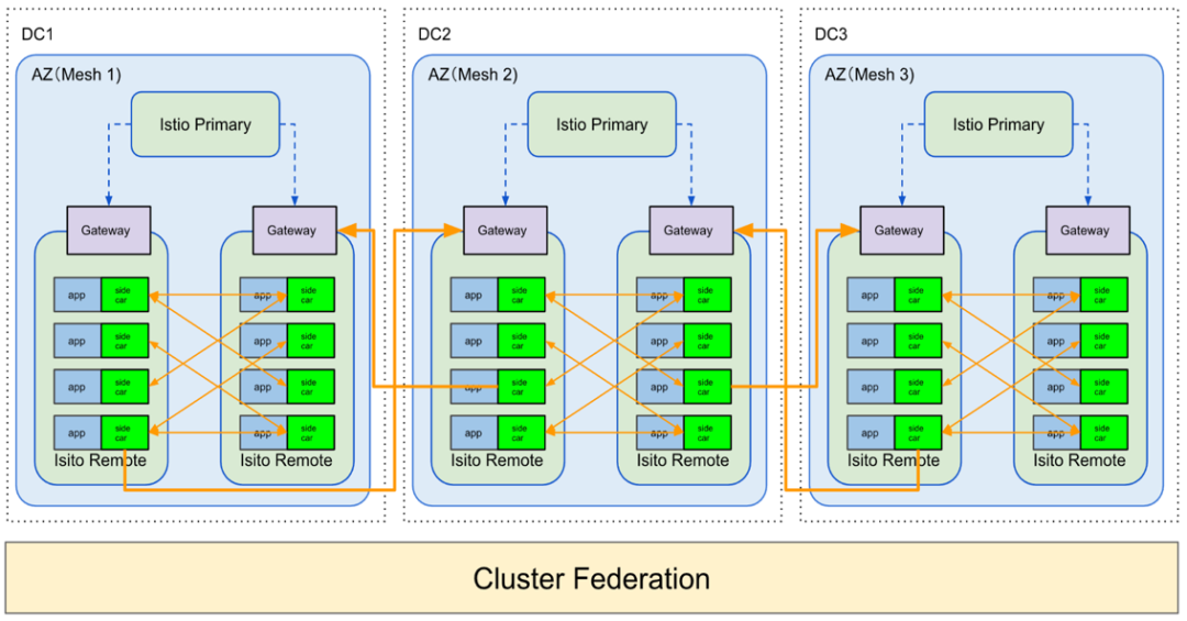 ③为了保证高可用性,同时支持跨Mesh,跨数据中心的服务调用,以应对极端情况网格内服务整体不可用的情况;