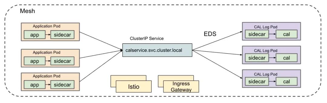CAL是eBay的集中日志系统,这套系统之前是基于硬件负载均衡,应用的后端服务器根据CAL Ingress的地址将日志发送到CAL系统。这里我们采用了两种模式来实现CAL,分别是IngressGateway模式和Mesh模式,其目标都是为了替换掉硬件负载均衡。