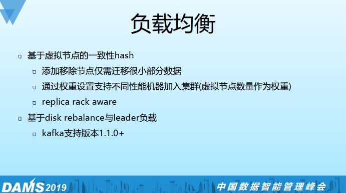 比如 Replica=3 的情况,确保三个副本在不同的物理 Rack 上,这样我们最多能容忍两个物理机架同时出问题而数据仍可用,我们 Rack Aware 方案是与负载均衡方案一起做掉的,具体后面会讲。