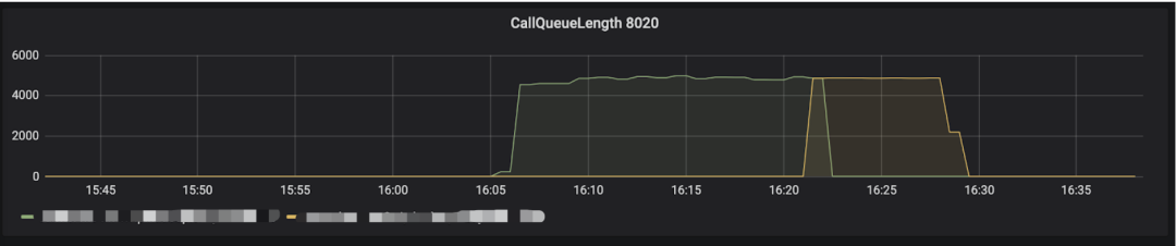 在5千个map task情况拷贝时,NN的callqueue打满在4千左右的值;图3(点击可查看大图)