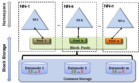 Namenodes 是联合的,Namenodes 之间相互独立,彼此之间不需要协调。Datanodes被所有Namenodes 用作块的公共存储。每个Datanode 向集群中所有的Namenodes 进行注册。Datanodes 周期性的发送心跳和块报告,同时处理来自Namenodes 的命令。