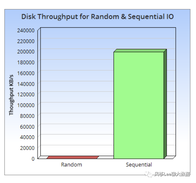 我们知道一般情况下磁盘在随机操作时速度很慢,但在顺序访问时速度很快,其实无论是磁盘还是主存(虽然程度较轻),随机和顺序这两种访问方式之间都存在一条鸿沟,如下图引入ACM的测试报告,顺序磁盘访问要比随机访问快很多。所以磁盘有如下技术特性:对磁盘来说,能够最大化的发挥磁盘技术特性的使用方式是:一次性的读取或写入固定大小的一块数据,并尽可能的减少随机寻道这个操作的次数。LSM-tree就是充分地利用了这种思想而实现的,批次顺序写入大大提高了写性能,因此LSM被设计来提供比传统的B+树或者ISAM更好的写操作吞吐量,通过消去随机的本地更新操作来达到这个目标。