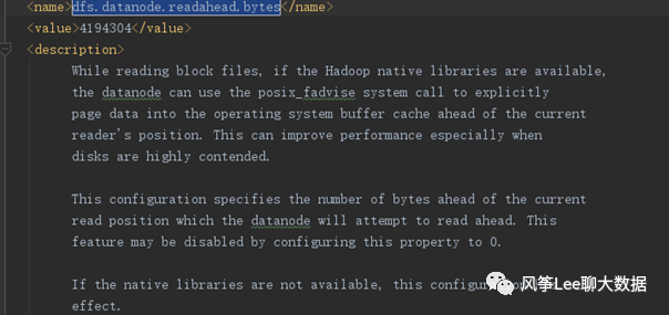 提前读取的字节数配置dfs.datanode.readahead.bytes 默认为4MB