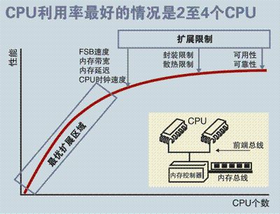 SMP 服务器的主要特征是共享,系统中所有资源 (CPU 、内存、 I/O 等 ) 都是共享的。也正是由于这种特征,导致了 SMP 服务器的主要问题,那就是它的扩展能力非常有限。对于 SMP 服务器而言,每一个共享的环节都可能造成 SMP 服务器扩展时的瓶颈,而最受限制的则是内存。由于每个 CPU 必须通过相同的内存总线访问相同的内存资源,因此随着 CPU 数量的增加,内存访问冲突将迅速增加,最终会造成 CPU 资源的浪费,使 CPU 性能的有效性大大降低。一些博客上关于cpu个数和利用率方面有相关说明:实验证明, SMP 服务器 CPU 利用率最好的情况是 2 至 4 个 CPU 。