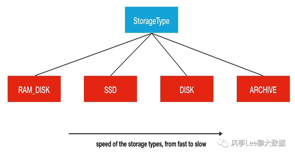 HDFS中存储介质分类(StoragType类中有相关定义)RAM_DISK(内存)SSD(固态硬盘)DISK(普通硬盘,在HDFS中,如果没有主动声明数据目录存储类型默认都是DISK)ARCHIVE(没有特指哪种存储介质,主要的指的是计算能力比较弱而存储密度比较高的存储介质,用来解决数据量的容量扩增的问题)