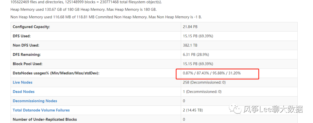 hdfs集群经常会出现磁盘数据不均衡问题,如下图
