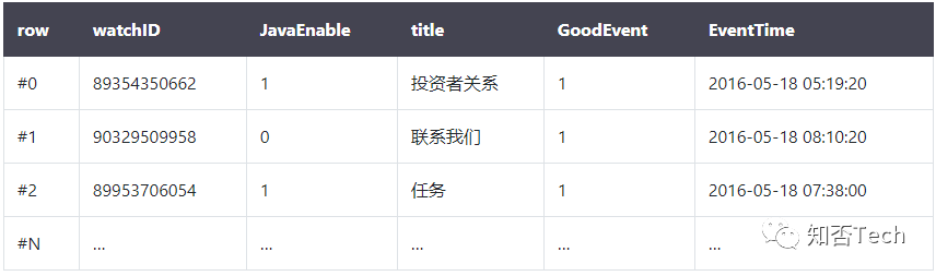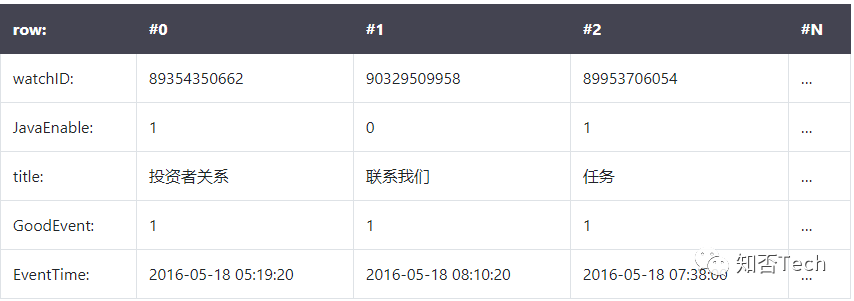 该示例中只展示了数据在列式数据库中数据的排列方式。