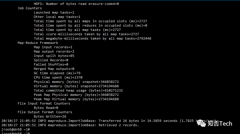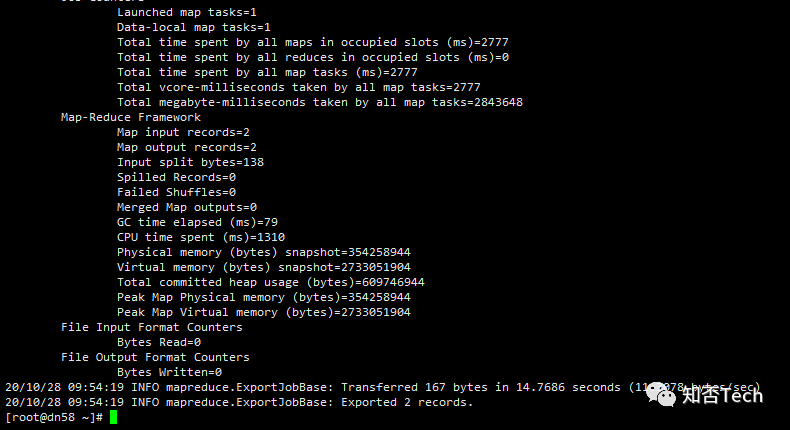 [root@dn58 ~]# sqoop import --connect jdbc:mysql://10.172.54.58:3306/company --username root --password Admin@2020 --table staff --target-dir user/company --delete-target-dir --num-mappers 1 --fields-terminated-by "\t"