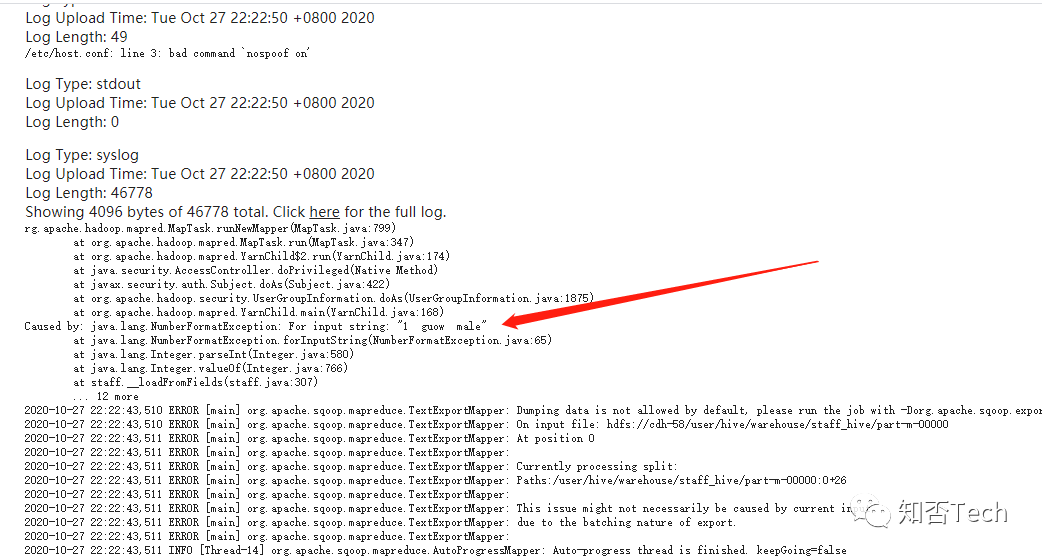 查看yarn任务日志,发现把整行数据当做一个数据转换给数字类型报错。