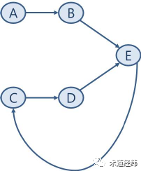 spinlock是一个高频操作,这样无疑会大大增加每次lock和unlock的开销,因而只适合debug的时候使用。前面介绍spinlock实现的文章讲过,为了提高spinlock的执行效率,内核开发者做了极致的优化,这也是Linux内核不支持spinlock的嵌套使用的原因,因为如果支持,那么每次加锁的时候,都需要进行owner的判断,效率就会受到影响。为了防止AB-BA死锁的出现,就需要解决不同spinlock之间的依赖问题。而一个系统中spinlock的数目繁多,根据分而治之的原则,Linux内核将spinlock分成了若干个lock class,比如在代表文件的inode结构体中的spinlock就属于同一class,其中的每个spinlock是这个class的一个实例。在系统运行过程中,内核会追踪每个lock class的使用状态,和各个lock class之间的依赖关系,并在出现异常时报错。「使用状态」包括一个lock是如何被使用的,以及所处的context,而这里「依赖关系」可简单地理解为是加锁的顺序,比如"L1 -> L2"就表示一个线程在持有L1的时候试图获取L2。这样的一套检测机制被称为"lockdep"。lock class之间的依赖可用如下的图表来表示,其中每个节点代表一个具体的lock class,箭头代表依赖关系。每当lockdep检测到有新的依赖关系产生时,它就会在图表中添加对应的箭头指向,比如这里的"E -> C"。可以看到,这里C, D和E形成了循环依赖,这就是deadlock可能发生的场景。