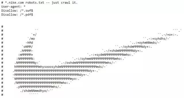 34. 就连Nike也尝试了在他们的robots文件里加入了一个有趣的图案