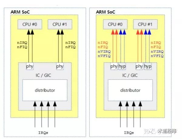 v4版本加入了对直接注入虚拟中断的支持,v3和v4都可用于ARM Cortex-A53,A57,A72等。