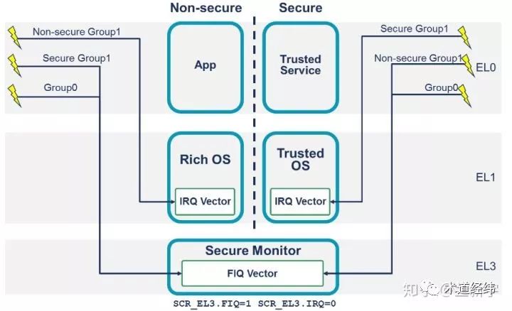 这种对中断源的划分是从GIC输入的角度进行的,而中断经过GIC(输出)到达CPU之后,则只有IRQ(Interrupt Request)和FIQ(Fast Interrupt Request)两种,其转换规则有一些复杂,在此就不展开了。