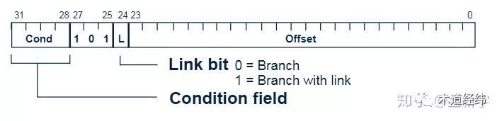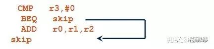 更多的时候,跳转是结合着一定的条件进行的,对应我们的高级语言就是"if", "else"这样的。比如"BEQ"就是相等(equal)的时候才跳,而是否相等则是由前序的指令,比如比较指令"CMP"执行后的结果(Zero)决定的。