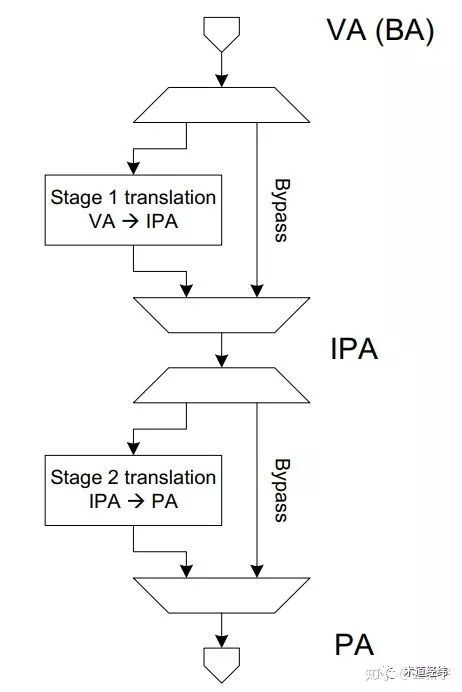 SMMU支持stage 1的GVA->GPA(按ARM的叫法则是VA->IPA)的转换,也支持stage 2的GPA->HPA(IPA->PA)的转换,你可以选择只进行stage 1的转换,不进行stage 2的转换,也可以绕过stage 1的转换,只用stage 2的转换,还可以stage 1和stage 2的转换都用。stage 1和stage 2的转换都不用……那就没SMMU什么事了。