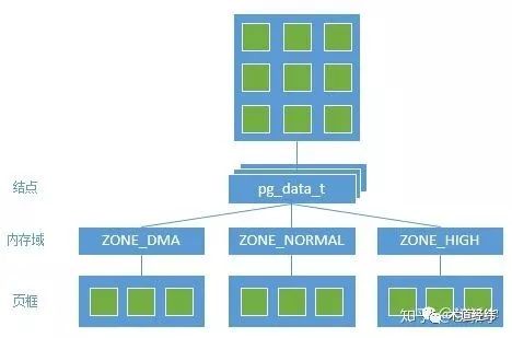 每个node由一个或多个zone(我们经常在各种对虚拟内存和物理内存的描述中迷失,但以后你见到zone就知道指的是物理内存)组成,每个zone又由若干page frames(一般page frame都是指物理页面)组成。