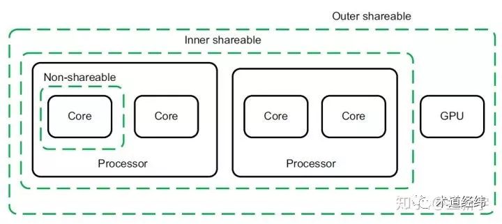 "IS"(Inner Shareable)也是可选参数。Inner和Outer是描述cache属性的,通常一个CPU独有的(比如L1 cache)和一个cluster下的CPU共享的(比如L2 cache)被定义为inner,不同cluster的CPU共享的(比如L3 cache)被定义为outer。TLB也是一种cache,但不管是L1 data/instuction TLB,还是L2 LTB,都是每个CPU单独一份,所以都是inner的。Shareable是描述内存属性的,表示该内存区域是否可被多核共享。对于多核共享的内存,当其中的某个核,比如,对共享内存中的某个page做了访问限制,它需要通过发出IPI(Inter Processor Interrupt)的方式,来通知其他核flush各自的TLB,这种方式被称为TLB击落(shootdown),在ARM指令上的体现就是TLBI IS。