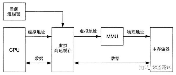 以被缓存的数据的虚拟地址来做index和tag的被称为虚拟高速缓存(即VIVT - Virtually Indexed, Virtually Tagged),其主要优点是,CPU不需要在每次读取或者写入操作的时候把虚拟地址转换为物理地址就能够存取cache,只有在发生cache miss或者需要和主存储器上的数据同步时,才需要MMU的参与。但是,这在多进程的运行环境下会带来问题,因为不同的进程可以使用相同的虚拟地址,被一个进程缓存的数据可能被错误地当作属于另一个进程的数据。