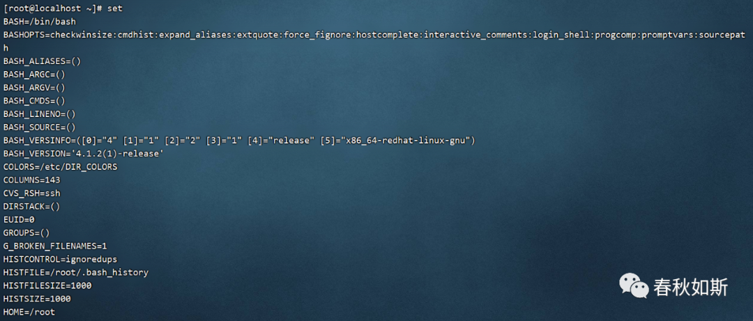 env 命令可以查询到所有的环境变量,可是还有一些变量虽然不是环境变量,却是和 Bash 操作接口相关的变量,这些变量也对 Bash 操作终端起到了重要的作用。这些变量就只能用 set 命令来查看,下面只列出重要的内容: