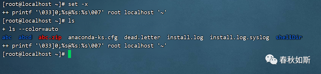 如果设定了-x 选项,会在每个命令执行之前,先把命令输出一次