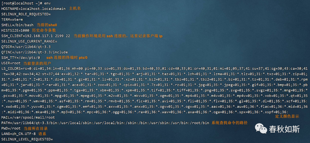 env 命令和 set 命令的区别是,set 命令可以查看所有变量,而 env 命令只能查看环境变量。
