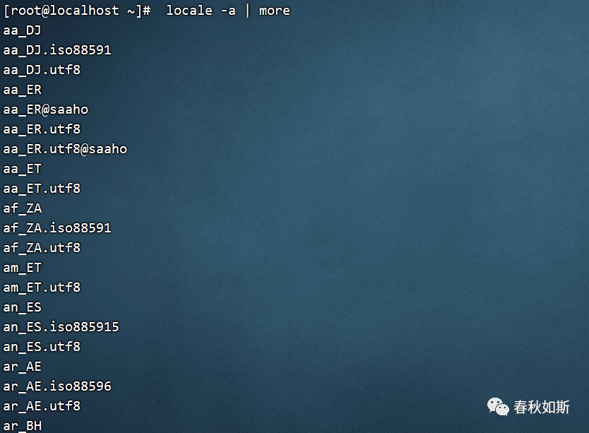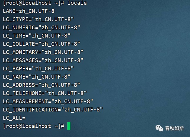 支持这么多的语系,当前系统到底是什么语系呢?使用 locale 命令