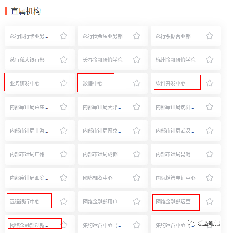 分别是总行本部,分支机构(各省分行),直属机构,直属机构就多了,什么软开,数据中心等都在这,看看下图。