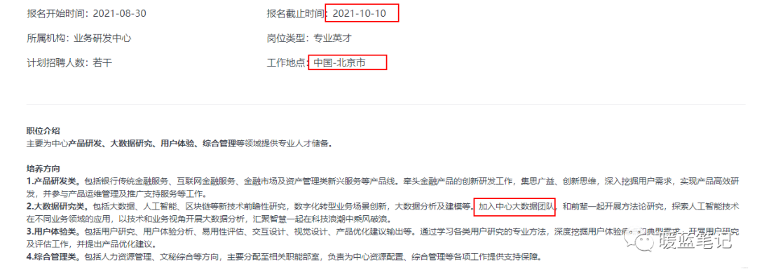 其实在 2018 年 11 月,工行总行就将信息科技部,产品创新管理进行了整合优化,并在此基础上建立了金融科技部,目的很明确,加强科技与业务的深度融合。这个岗位,是更加稳定,但是也很难进罗。