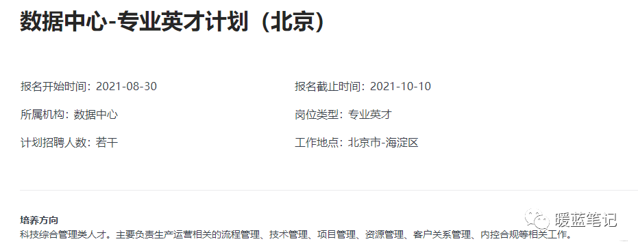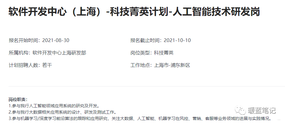 具体招聘流程:报名——简历筛选--笔试(10月中旬)线上机考--面试-体检-签约-录用