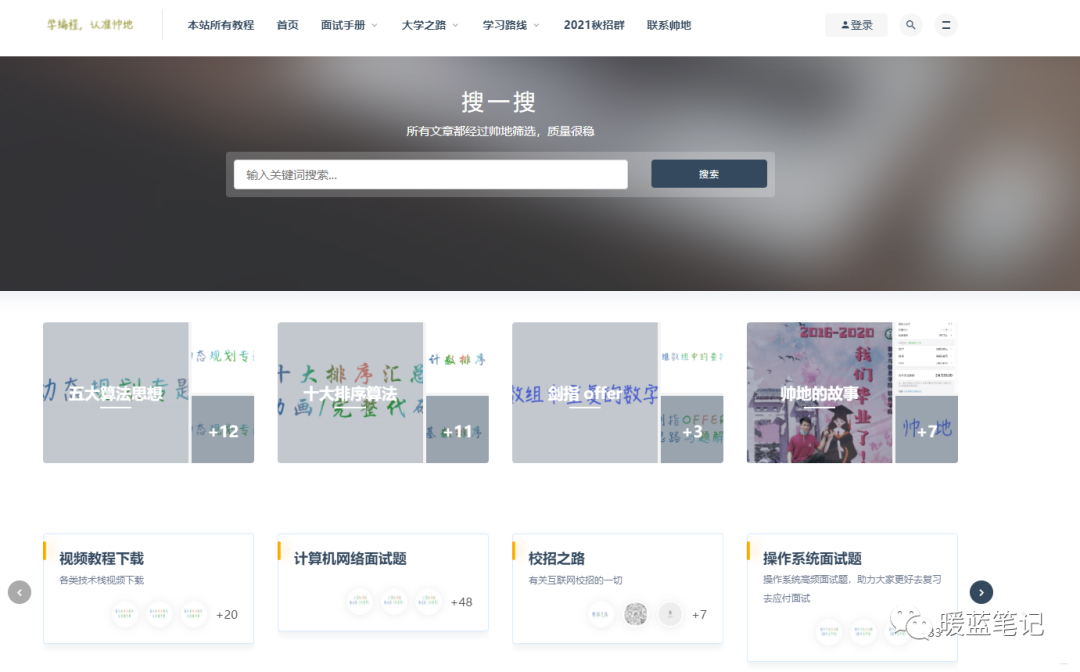 估计蛮多读者从帅地那儿看到我的文章,98 年的小伙子,又帅也有才,他自己建了个网站,涵盖了各个方向的面试题,可以去看看。链接直达