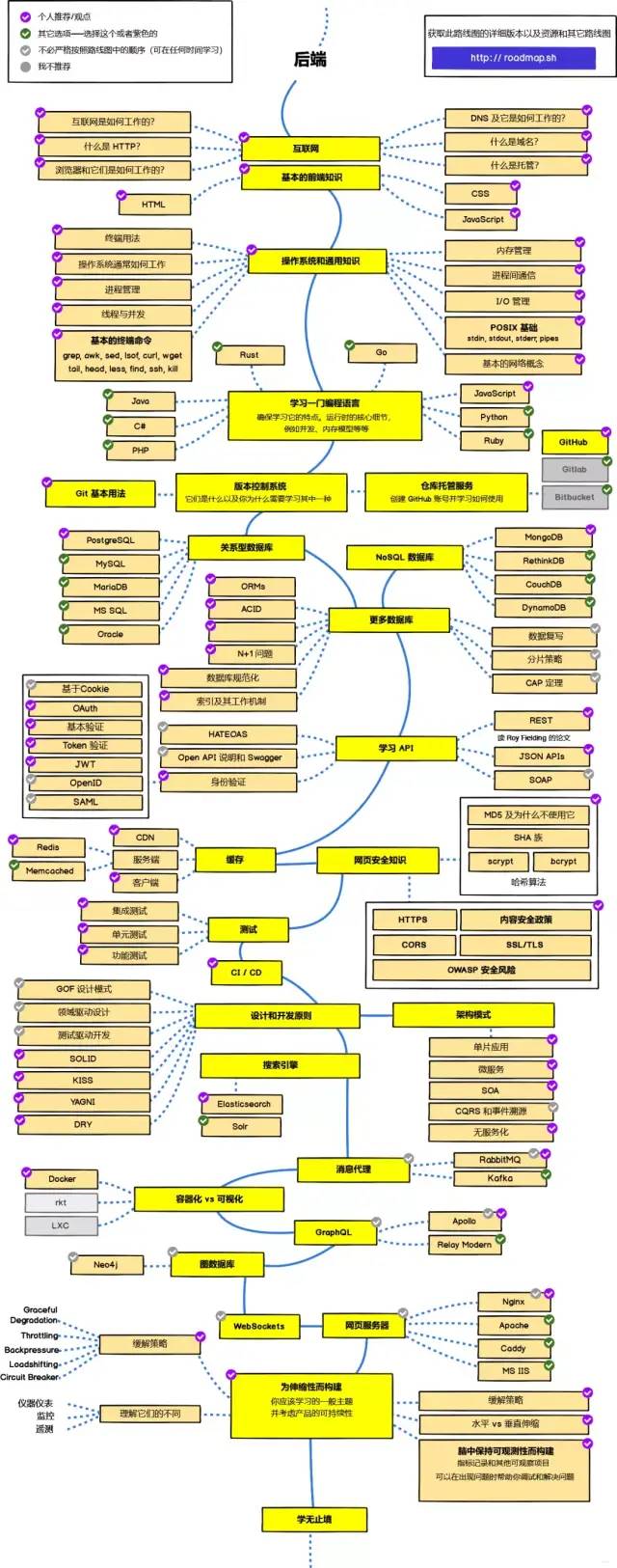 下图就是这个仓库关于后端的学习路线的中文翻译版本。内容总体还是比较赞的,可以作为自己后端学习之路的重要参考。
