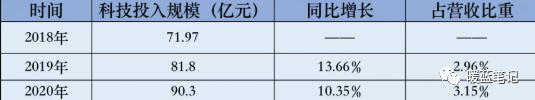 在 2020 年科技投入 90.3 亿,相比于 2019 同比增长了 10.35%,2018 年至今,邮储银行每年的信息科技投入增速均保持在 10% 以上。在 18 家全国性银行的金融科技投入中排名第五。