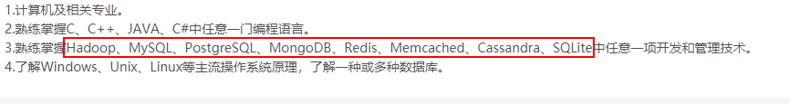 但是你的知识面一定得广了,比如数据库,中间件,常规计算机硬件等也需要有所了解,我们看看它的具体要求。