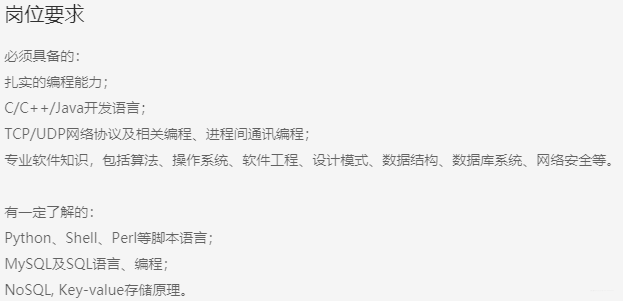 服务器方向包含 Linux 服务器开发工程师,Linux 后端/后台开发工程师。下面我们看看腾讯对于服务端开发工程师而言的基本要求。