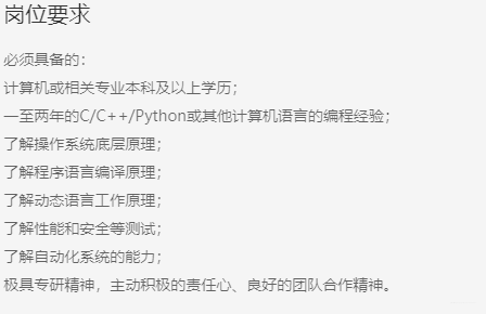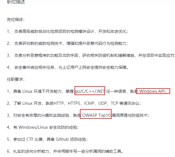 网络抓包工具 Wireshark,防火墙 Iptable 等熟知的工具,均为 C/C++ 开发。为了让大家更加清晰了解网络安全方向的定位,我们不妨去相关公司看看招聘要求。于我而言,学习网络更有效的方式之一,是学会去理解这些工具的开发思路,开源库如 libpcap。