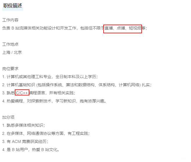 各大直播平台,北快手南抖音, B 站,映客等直播平台都会有音视频的岗位。这里的话希望能有一定的视频编解码基础知识,比如 HEVC 或 H264。