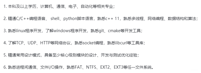 主要偏向内核及应用层,网络交互功能的开发,同时会对产品模块在不同平台的开发,移植等。