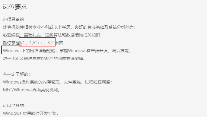 客户端或桌面开发工程师更多是 Win下的开发,其桌面应用的库如 QT 就需要了解了。