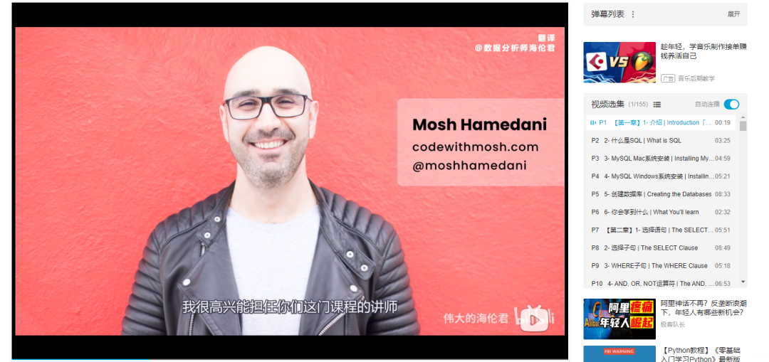 先学习数据库基本 SQL 语句,推荐CodeWithMosh 的 10 小时数据库课程,链接如下