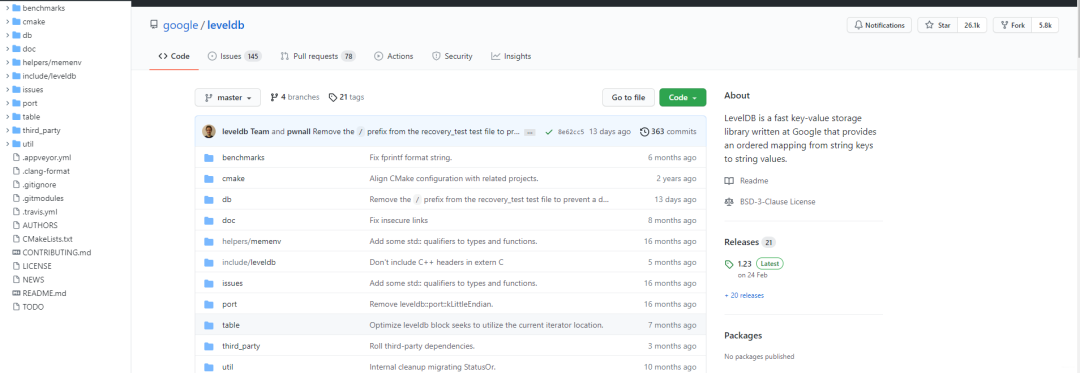 这是一个关于数据库的开源项目,目前市面上很多分布式存储都会用leveldb作为本地存储引擎,里面的LSM等经典存储结构值得大家学习