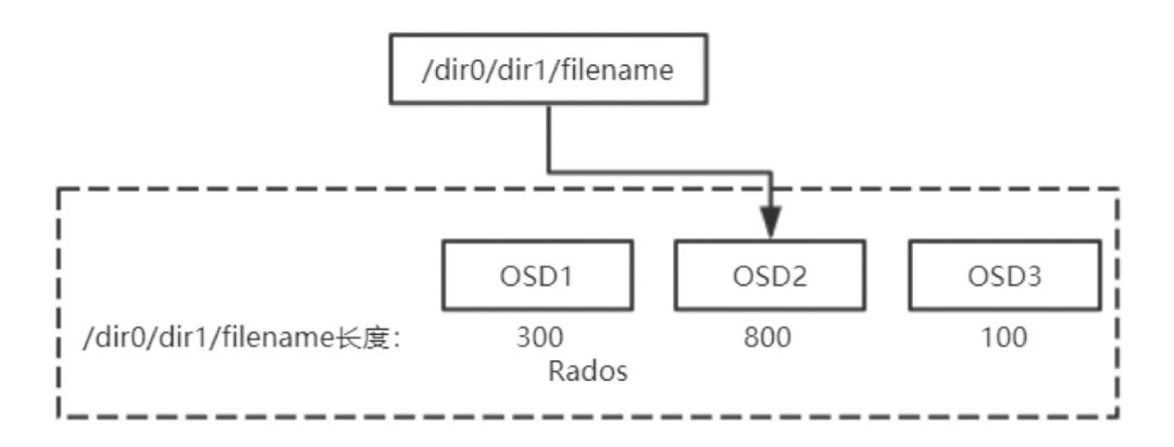 CephFS资源池包含了分布与冗余的逻辑,资源池基于Ceph的Crush规则。Crush算法本质也是利用哈希计算获得随机分布。Crush为了保证分布的弹性,将存储单元OSD在集群中唯一id号作为参数与文件名共同参与哈希计算,根据文件对每个存储单元OSD计算所得随机数(Ceph称之为“长度”)大小比较来决定落入哪个OSD中,最长的OSD将取胜获得此文件。