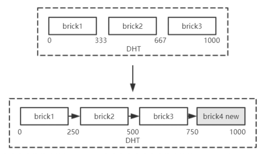 分布式系统扩容不是简单地将新文件都写入新存储节点或新存储单元,这样完全损失了旧有硬件的带宽和计算能力,失去了分布的意义。故通常情况下分布式系统扩容必定是将新存储单元与节点加入旧有分布模式逻辑下,经此过程为了继续维护容量和负载均衡,通常都将进行旧有数据向新存储区域的迁移。