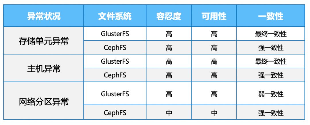 通常一个分布式文件系统设计无法在一开始就面面俱到,其架构设计必定基于对前述特性的一点或几点的强烈需求。对比GlusterFS和CephFS后不难发现,GlusterFS在设计上更多考量了分区容忍与可用性,还有线性扩展的能力,其去中心化意识较之CephFS更为明显;而CephFS从设计之初就确立了一套复杂的Paxos算法与Crush规则相辅相成的机制,在一致性问题考量上更为严密。基于二者社区版本做功能开发与性能优化时应当充分考虑其特性并进行缺陷的补足。