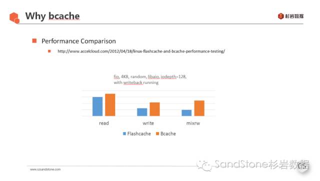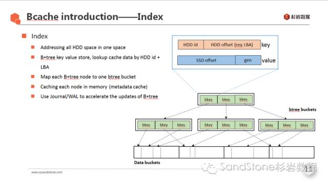 Bcache与其它几种方式最大的不同之处在于,它采用一棵相对标准的B+树作为索引,命中率会有很大提高,同时,它在架构设计上考虑了SSD本身的一些特性,在最大程度上发挥SSD性能的同时,也保护了SSD的寿命,也就是对SSD闪存介质的亲和性较好。