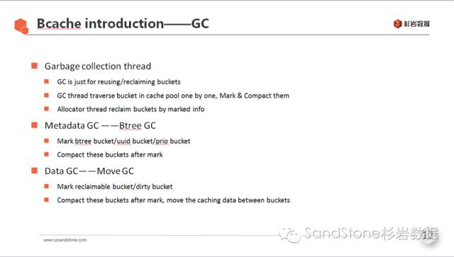 前面介绍bcache的分配器是以bucket为单位的COW式的分配,对与已经在SSD中的数据以及元数据,覆盖写时是写到新的空间中的,这样无效的旧数据就会在其所在的bucket内形成“空洞”,但是由于bcache空间回收的单位是bucket,因此需要一个异步的垃圾回收(GC)线程来实现对这些数据的标记与清理,并将含有较多无效数据的多个bucket压缩成一个bucket。