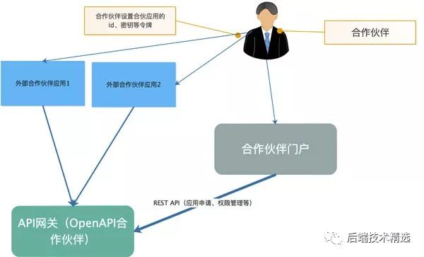 因此在OpenAPI网关之外,需要有一个面向合作伙伴的使用的平台用于合作伙伴,这就要求OpenAPI网关需要提供API给这个用户平台进行访问。