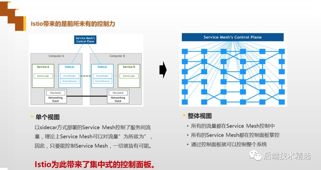 Service Mesh,这是新兴的基于无API网关的架构,通过在客户端上的代理完成屏蔽网络层的访问,这样达到对应用层最小的改动,当前Service Mesh的产品还正在开发中,并没有非常成熟可直接应用的产品。发展最迅速的产品是Istio。建议大家密切关注相关产品的研发、业务使用进展。