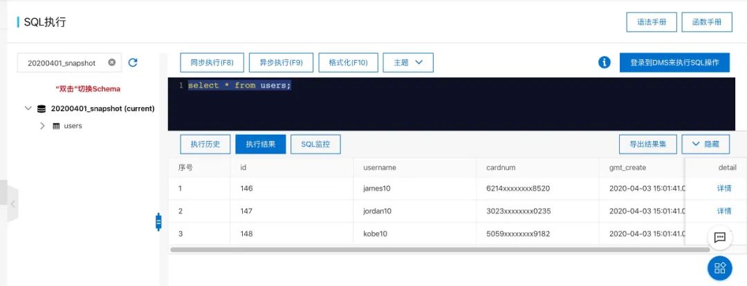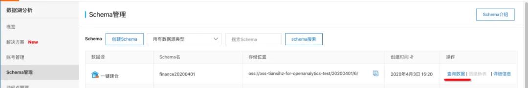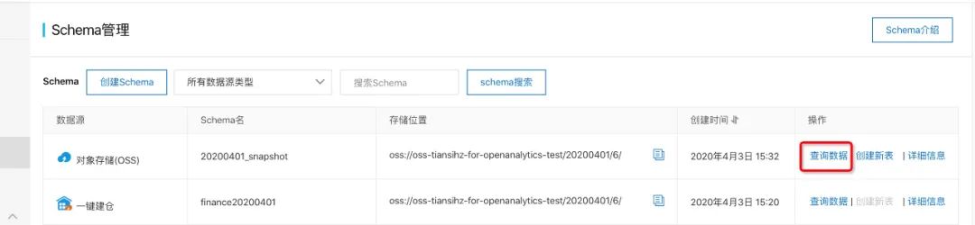 schema管理找到20200401_snapshot,点击“查询数据”进入sql控制台